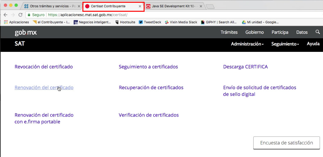 12. Vuelve a tu explorador y da clic en “Renovación de certificados”